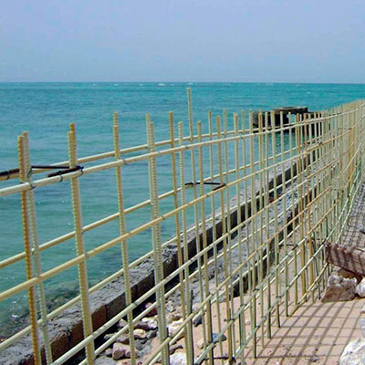 美國加州Hueneme港的海軍設(shè)施工程服務(wù)中心于20世紀(jì)90年代設(shè)計(jì)建造了由FRP預(yù)應(yīng)力樁和上承平板構(gòu)成的碼頭,該碼頭在樁和墩的設(shè)計(jì)中都使用了預(yù)應(yīng)力FRP筋。該結(jié)構(gòu)使用至今仍能按照當(dāng)初的設(shè)計(jì)要求正常工作,表明經(jīng)過恰當(dāng)?shù)脑O(shè)計(jì)和嚴(yán)格的施工,F(xiàn)RP筋能夠滿足在海洋工程中應(yīng)用的嚴(yán)苛要求。