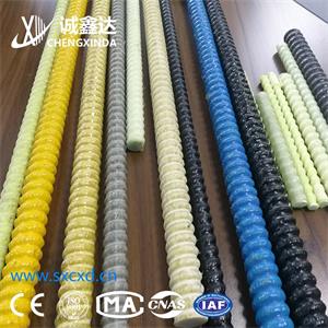 玻璃纖維筋:以高強玻璃纖維為增強材料,以合成樹脂為基體材料,并摻入適量輔助劑復合而成的復合材料,稱為玻璃纖維增強塑料(英文縮寫:FRP)俗稱玻璃鋼鋼筋。主要有“玻璃纖維鋼筋”和“玄武巖纖維鋼筋”。 (Φ6mm~Φ36mm)